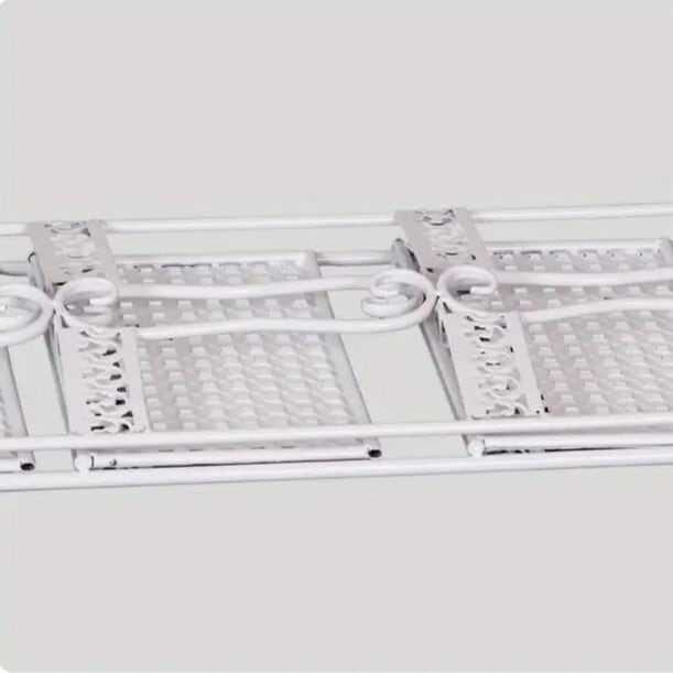 まるで宮廷の一角に佇むような、優雅な佇まいの折りたたみ式アイアンシェルフ。繊細なアイアンワークが美しい3段構造は、ヨーロッパのクラシックインテリアを思わせるデザインで、姫系やロココ調のお部屋に気品と華やぎを添えます。