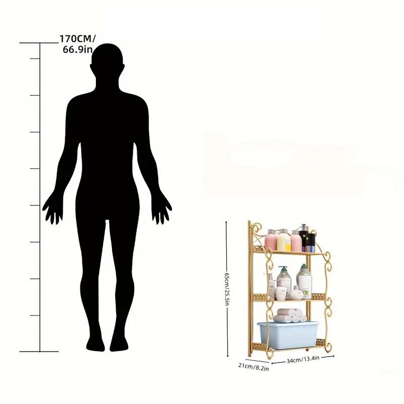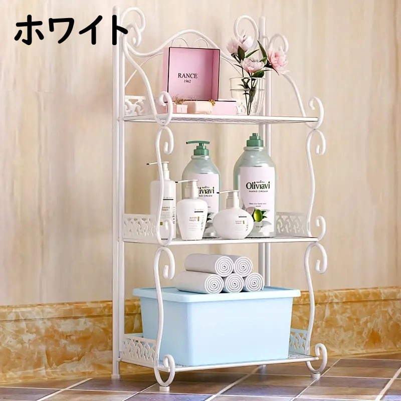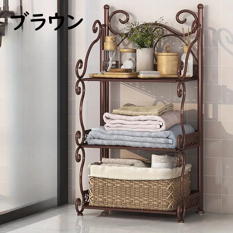 ロココ調 姫系 アイアンラック 3段 折りたたみ収納シェルフ アンティーク風 フリースタンディング 猫脚風 キッチン・バスルーム用 多目的棚