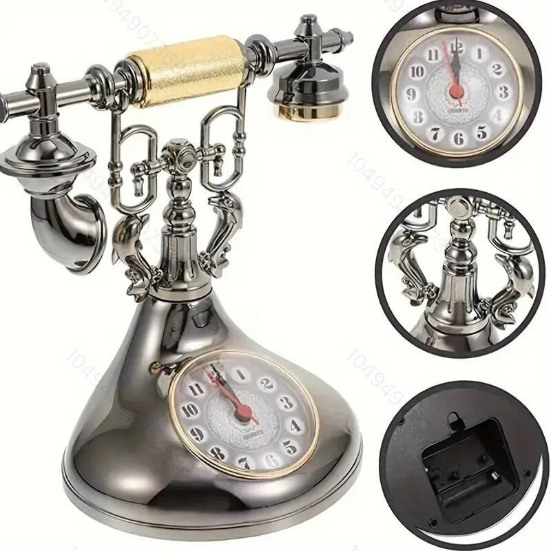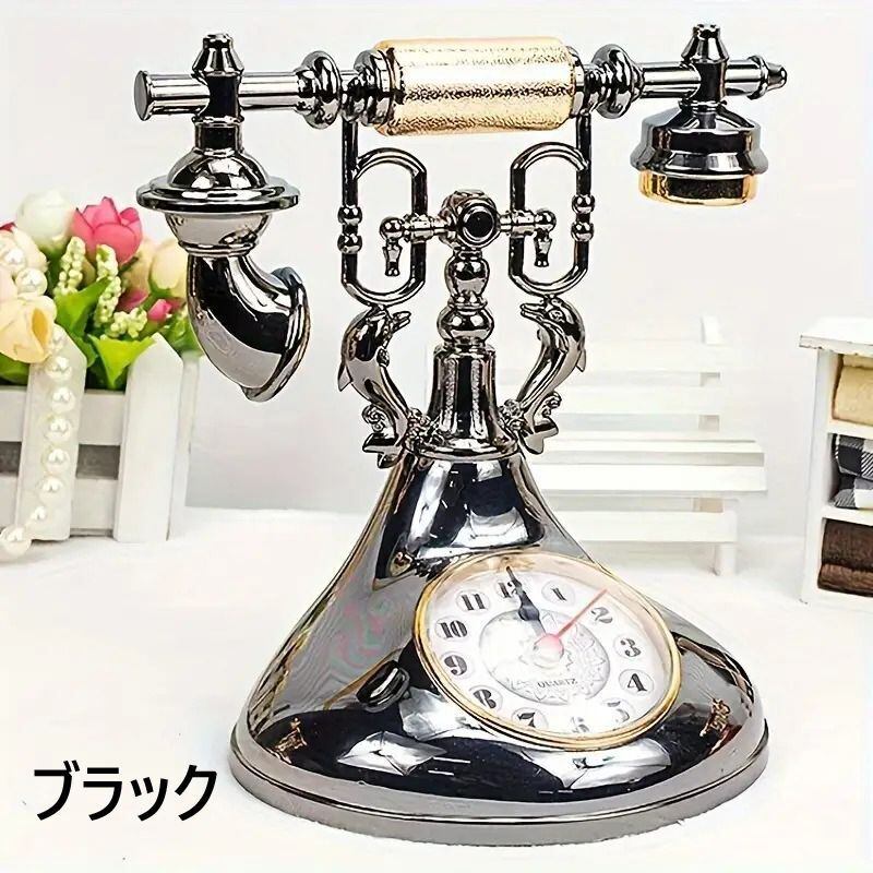 目覚まし時計 クラシック電話デザイン レッド ブラック ゴールド アンティーク調 ヴィンテージ メタリック調 上品 置き時計 人気 クラシカル