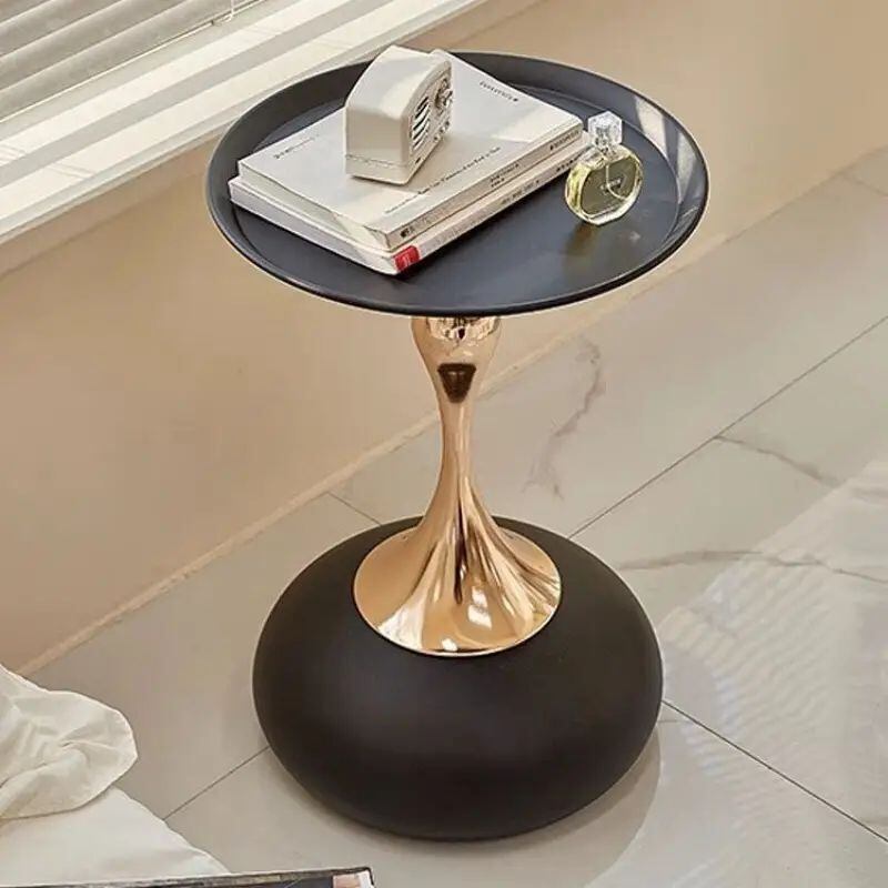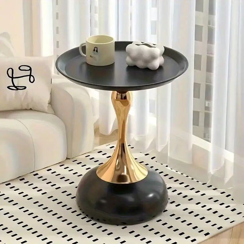 コーヒーテーブル リビングルーム ベッドルーム 丸型天板 アンティーク調 サイドテーブル 優雅 メタリックベース クラシカル 黒 白 ソファサイド