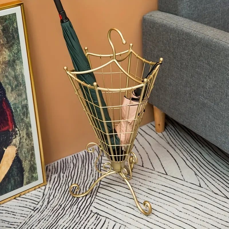 ゴールド傘型スタンドは、優美なシルエットと華やかなゴールドの輝きが魅力のアンブレラホルダー。
