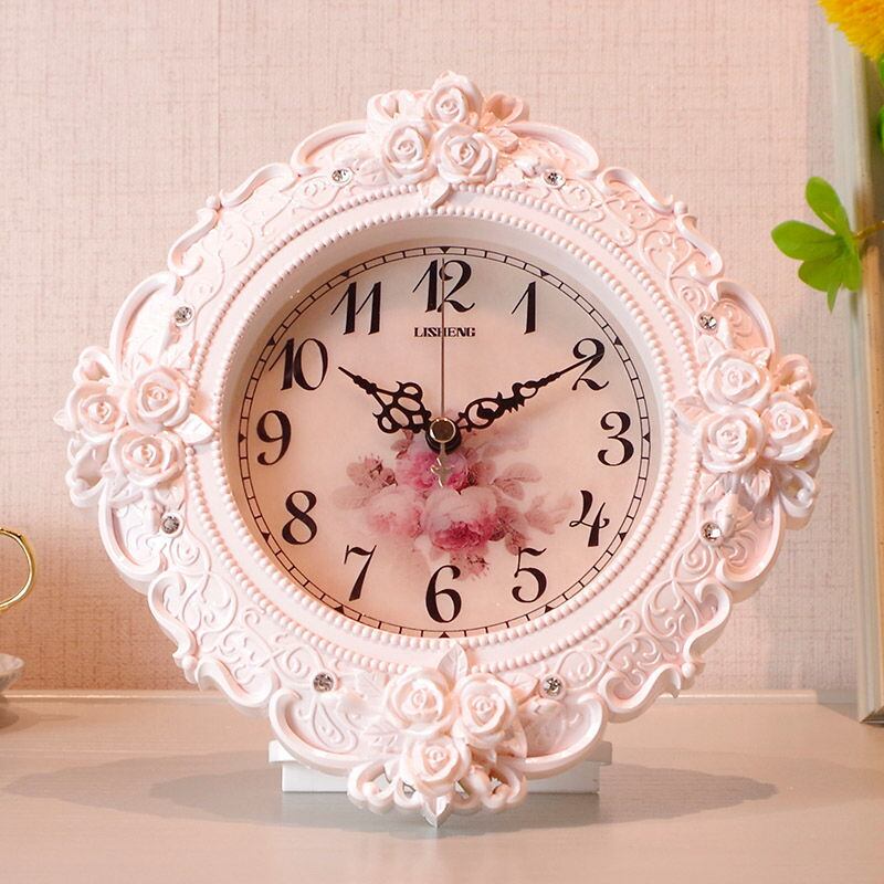 ヨーロピアン調置き時計 北欧風 卓上 エレガント かわいい おしゃれ 彫刻入り 薔薇モチーフ サイレントデュアル プレゼント ギフト