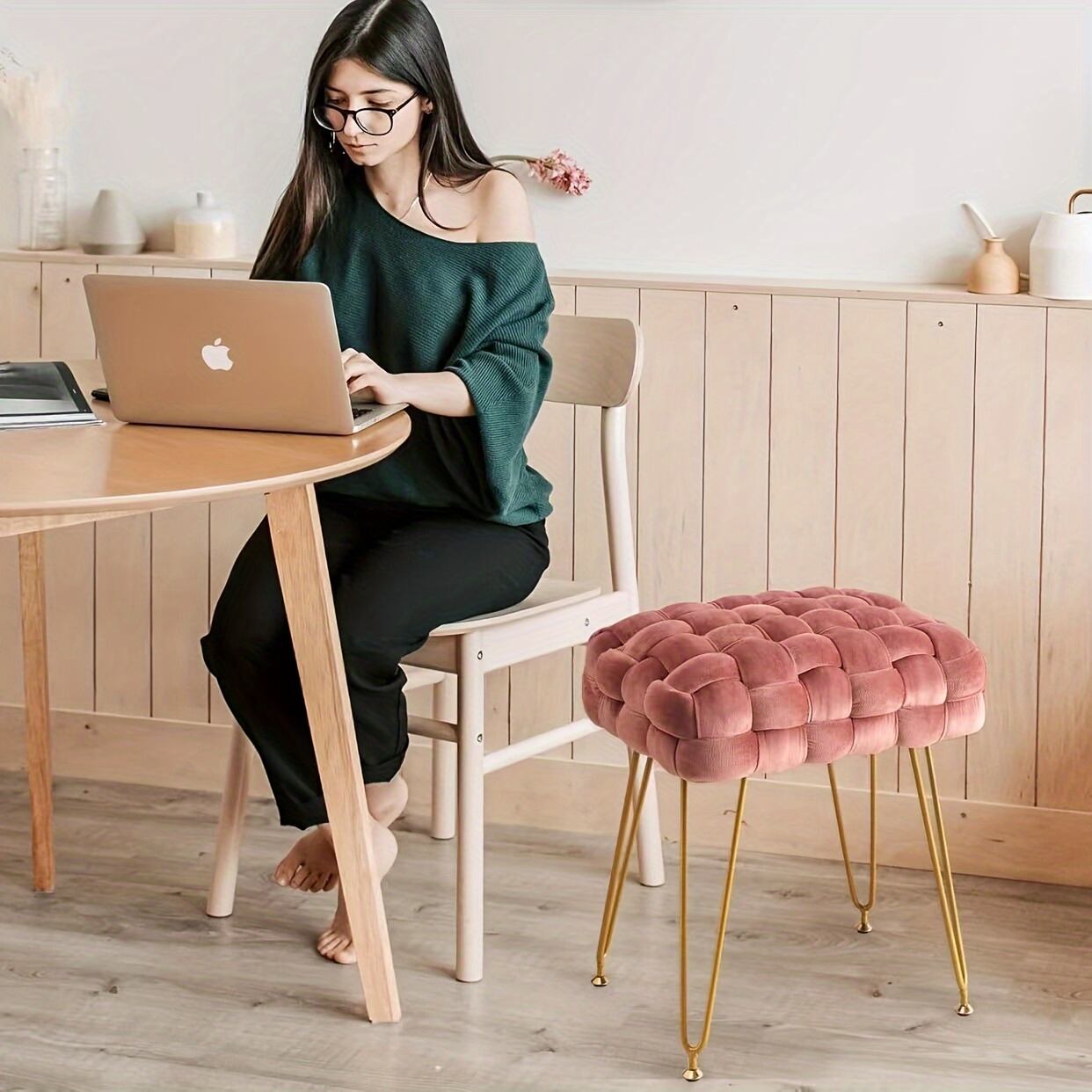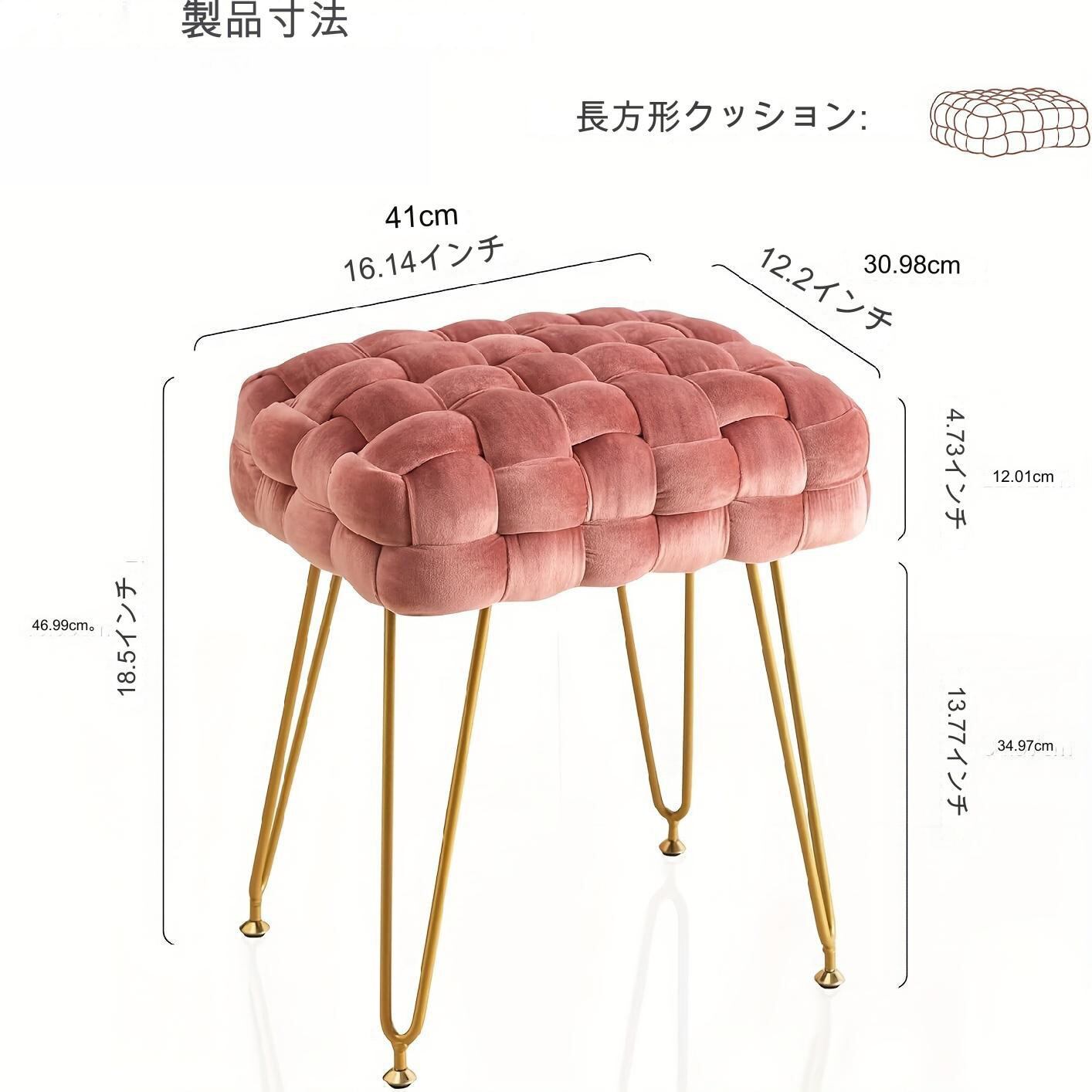 ベルベットスツール 柔らかクッション 優雅 幾何学デザイン ゴールドメタル脚 高耐久 オットマン フットスツール リビングルーム 寝室 クラシック装飾 高級感 エレガント スツール