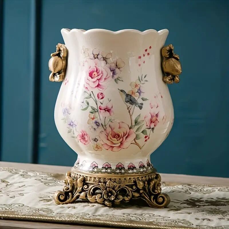 エレガントな佇まいが魅力のヴィンテージ風セラミック花瓶。