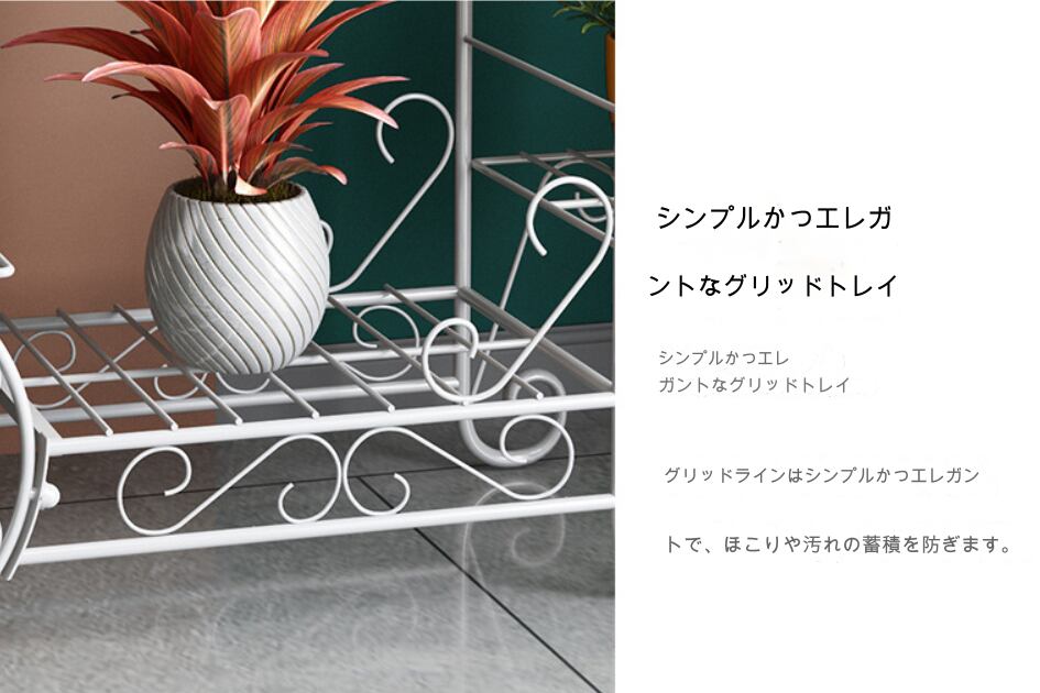 ヨーロピアン調フラワースタンド アイアン製 多層ラック 屋内 屋外 エレガント植木鉢棚 床置きスタンド 白 黒 ロココ調 アンティーク風 ガーデニング 花台 おしゃれ 植物飾り