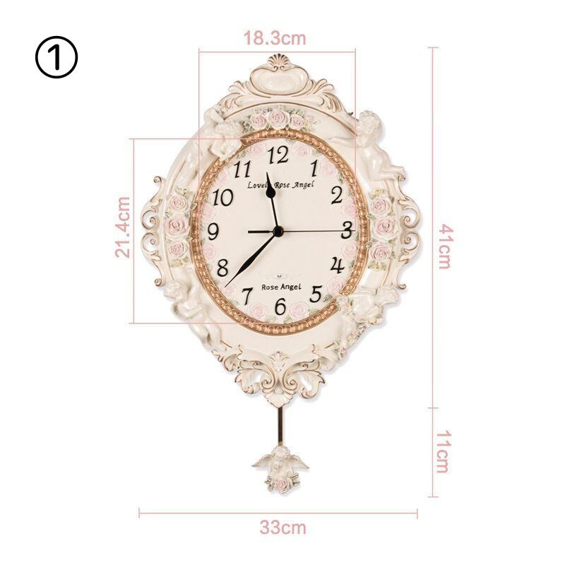 壁掛け鏡 壁時計 ヨーロピアン立体 ローズ エンジェル クラシックデザイン ホームインテリア 樹脂製 スイング サイレント クォーツ時計