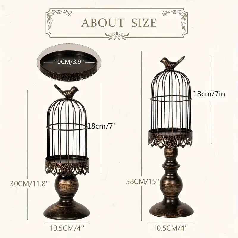 鳥かごのキャンドルホルダー アンティーク風 2サイズセット ブラック ホワイト クラシック ロココ調 ヨーロピアン アイアン おしゃれ 姫系 インスタ映え 可愛い 高級感