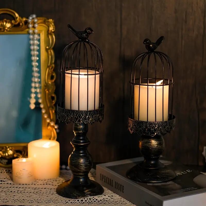 繊細な装飾が美しい、アンティーク調の鳥かごキャンドルホルダー。