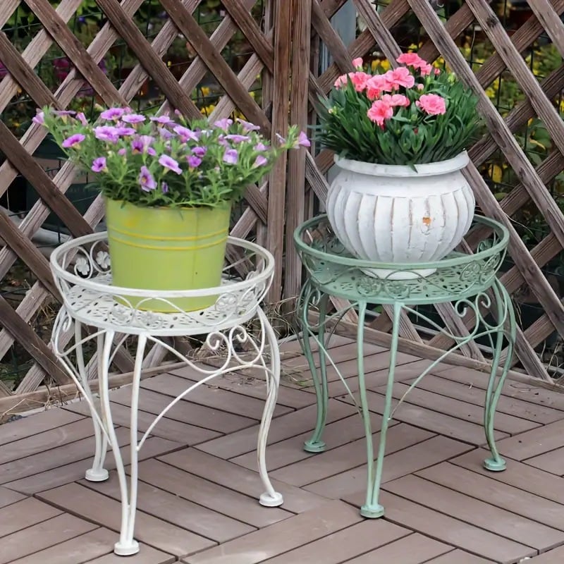 お洒落に空間を彩るアンティーク調メタルプラントスタンド。