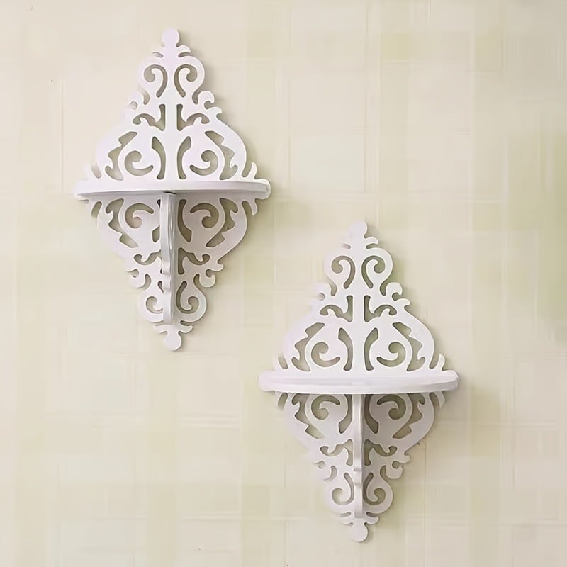 ウォールラック 2個セット 壁掛けシェルフ ロココ調 ヨーロピアン アンティーク風 ホワイト 白 姫系 クラシック 高級 かわいい ウォールデコ SNS映え インスタ映え インテリア
