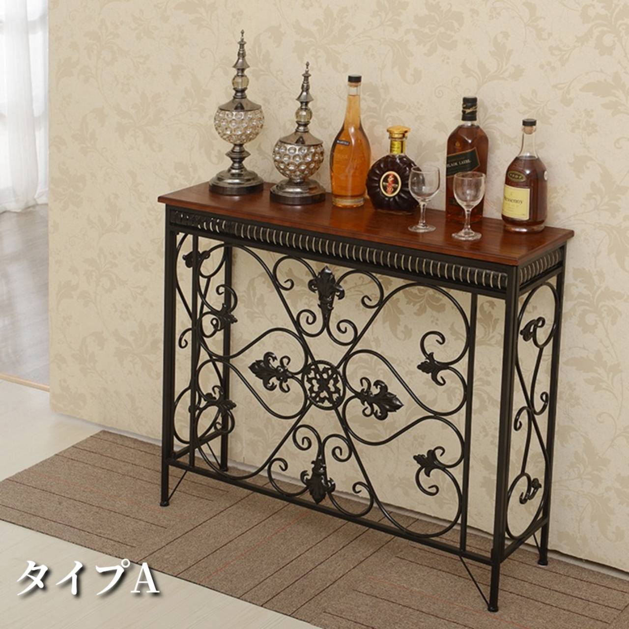 玄関テーブル エレガント メタル ハードウッド 組み立て不要 彫刻カットアウトデザイン 収納棚付 クラシカル 装飾家具 サイドボード ヨーロピアン調 高級感 ホワイト ブラック