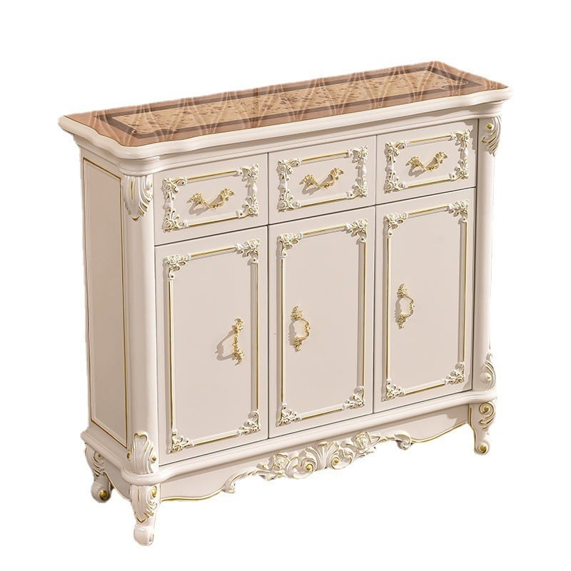 高級感漂うロココ調の「コンソールキャビネット」は、優美な大理石調トップと繊細な木目が魅力の一台。姫系インテリアやヨーロピアンスタイルと相性が良く、空間に気品と華やぎをもたらします。