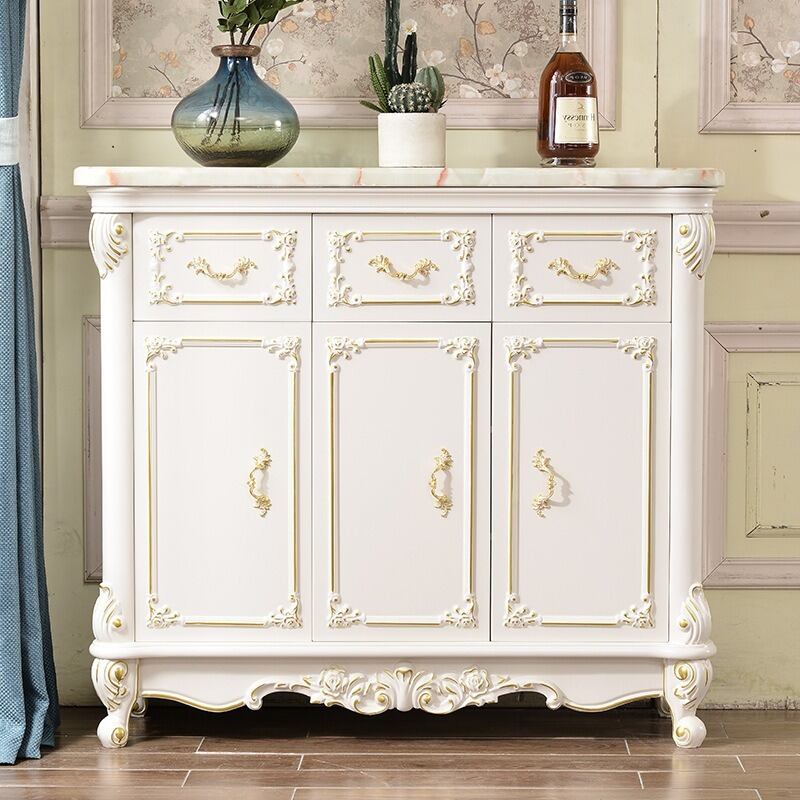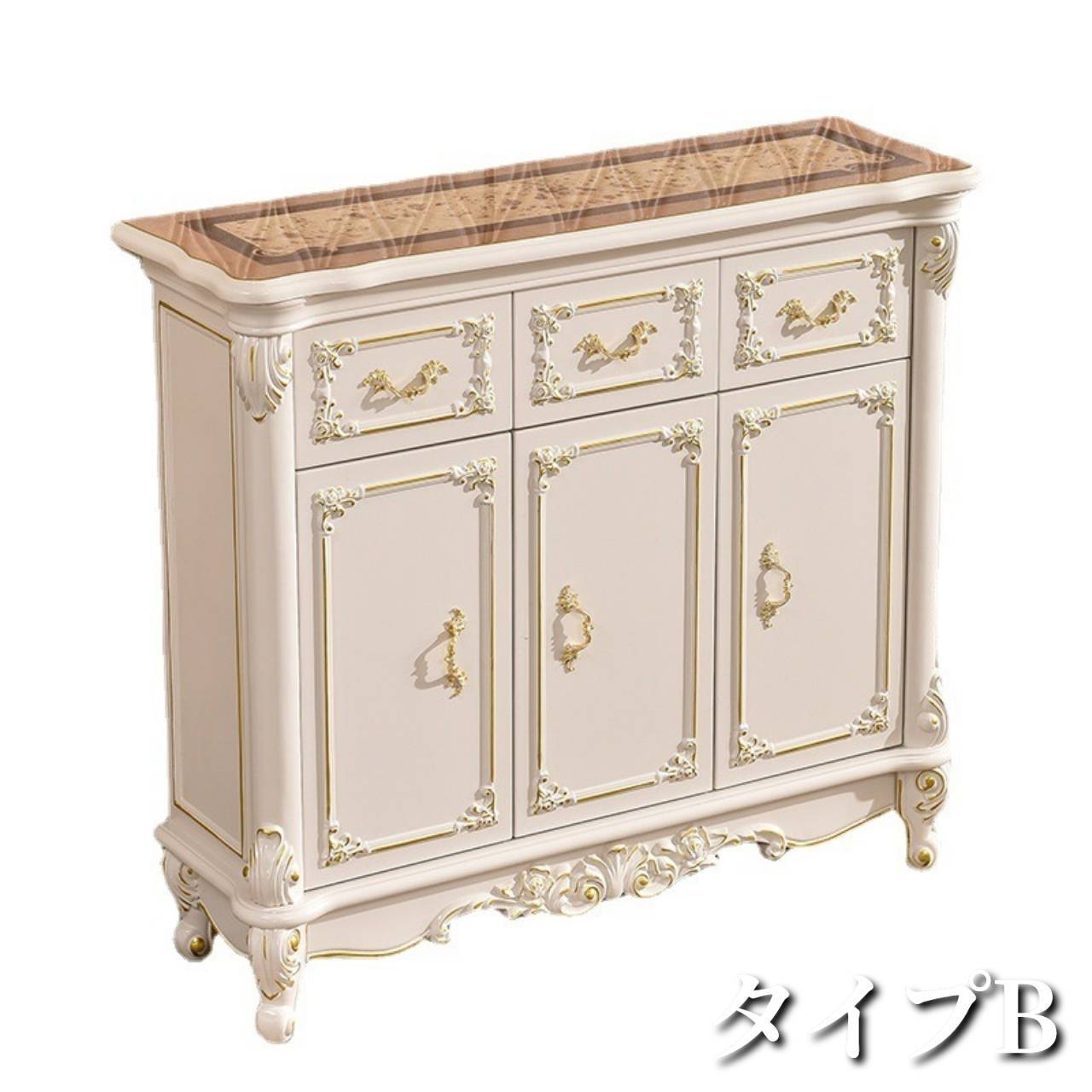 コンソールキャビネット ロココ調 大理石風 木目調 収納家具 高級感 姫系 アンティーク調 無垢材 ホワイト ドレッサー風 クラシカル エレガント ヨーロピアン 上品
