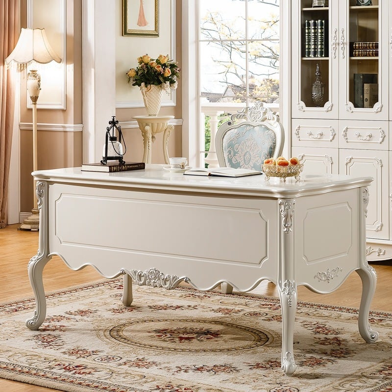 クラシックデスク シャビーシック エレガント ヨーロピアン ライティングデスク フレンチ ホワイト アンティーク風 姫系 ロココ調 猫脚 高級感 木製 おしゃれ クラシカル インテリア