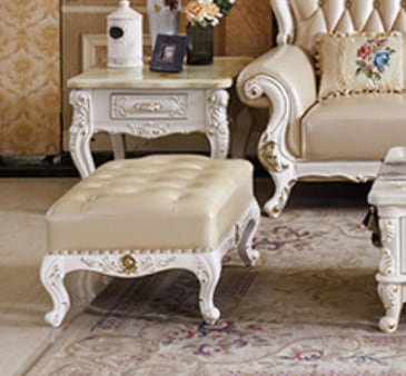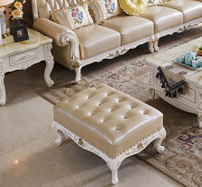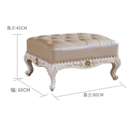 オットマン フットスツール 無垢材 彫刻入り家具 本革ソファ リビング アンティーク風 サイドチェア 腰掛け ロココ調 姫系 エレガント ヨーロピアンスタイル 高級感 上品 おしゃれ
