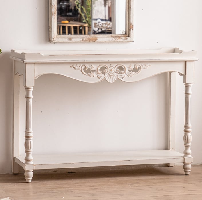 ポーチテーブル エンドテーブル 彫刻 ホワイト ロココ調 姫系 アンティーク調 サイドテーブル クラシック シャビーシック ヨーロピアン 高級感 優雅 エレガント 宮殿風