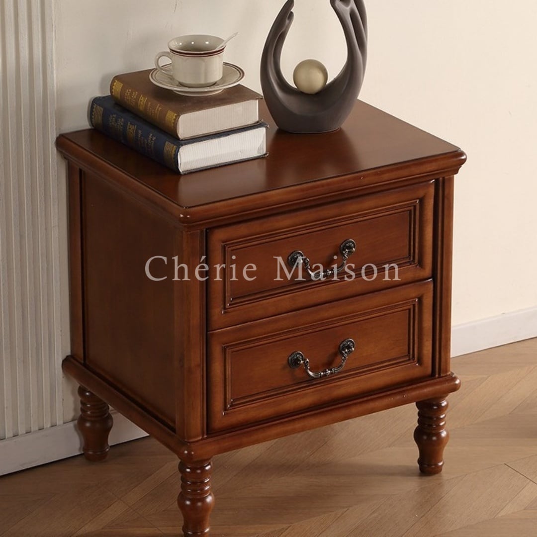 豊かな木材の質感と、細部までこだわったデザインは、まるで貴族の館に置かれているかのような存在感を持っています。このナイトテーブルがあれば、寝室がより快適で華やかな空間に生まれ変わります。毎晩のリラックスタイムを、特別なものに演出してくれます。