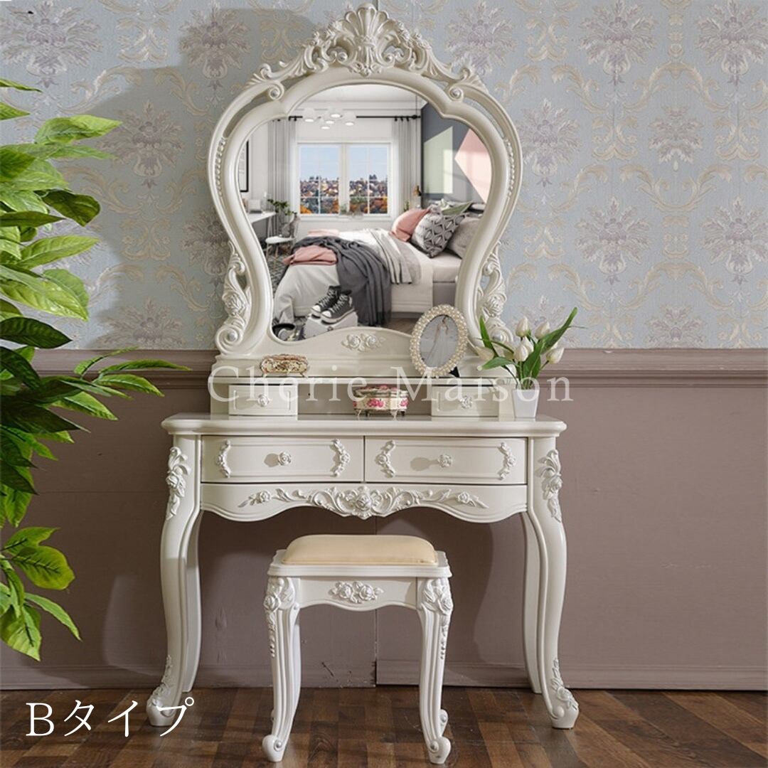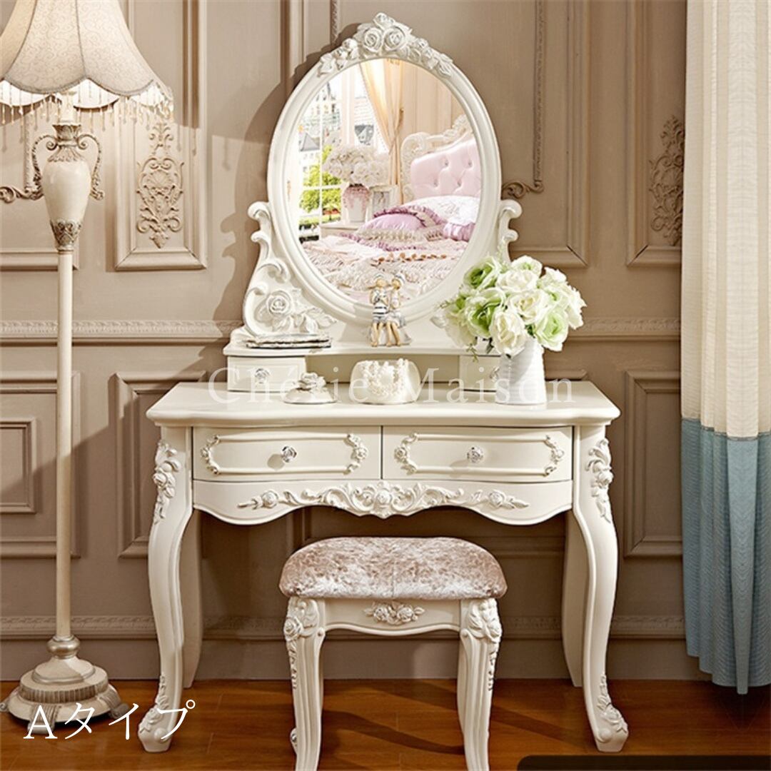 ドレッサー スツール 2点セット ロココ調 姫系 ヨーロピアン 姫家具 アンティーク調 クラシック インテリア リビング