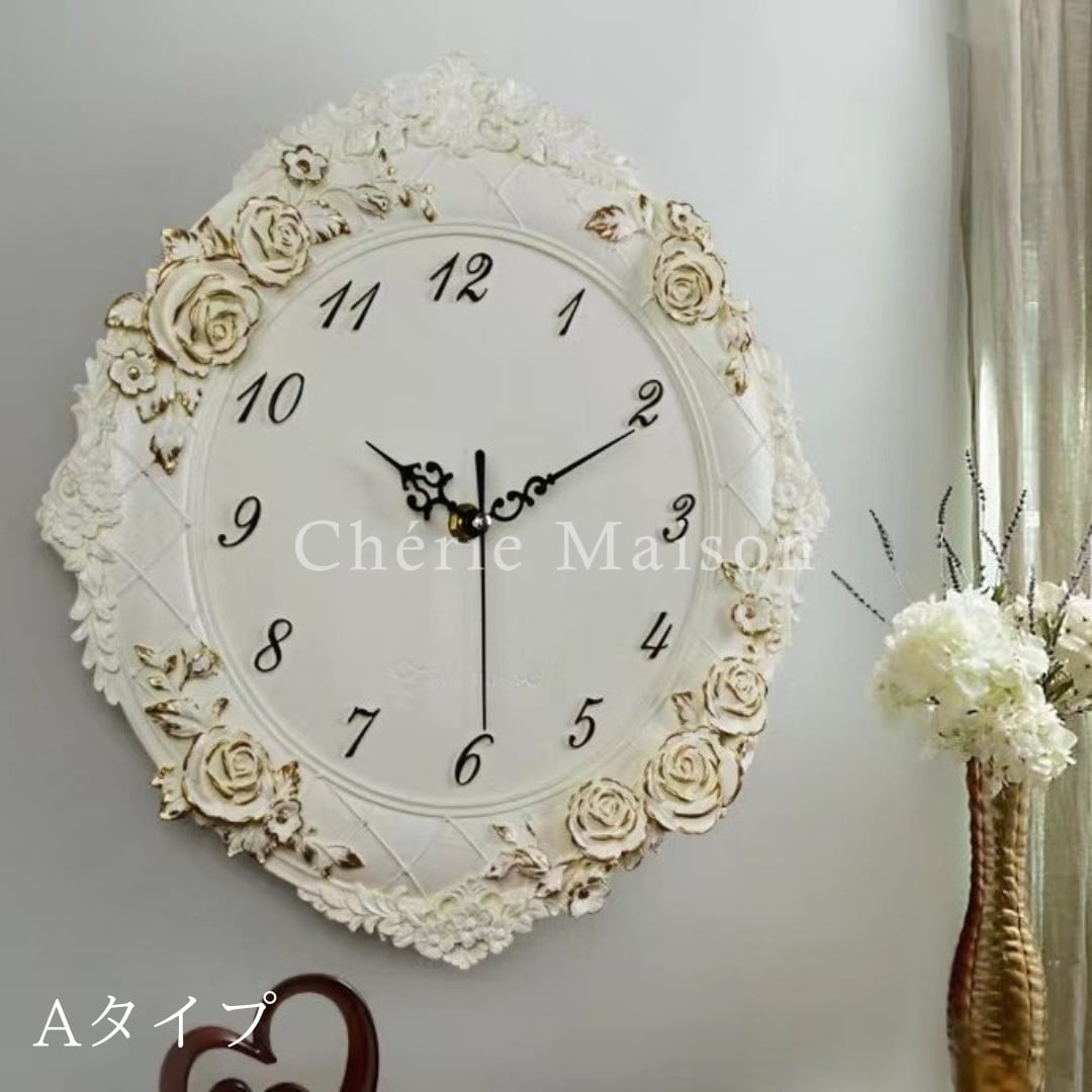 時計 壁掛け 薔薇 ロココ調 ヨーロピアン 姫系 姫家具 アンティーク クラシック フレンチ インテリア リビング 寝室